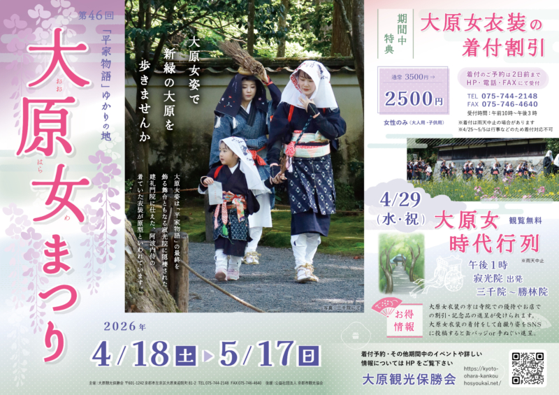 大原女の着付け割引期間は4/18(土)〜5/17(日)